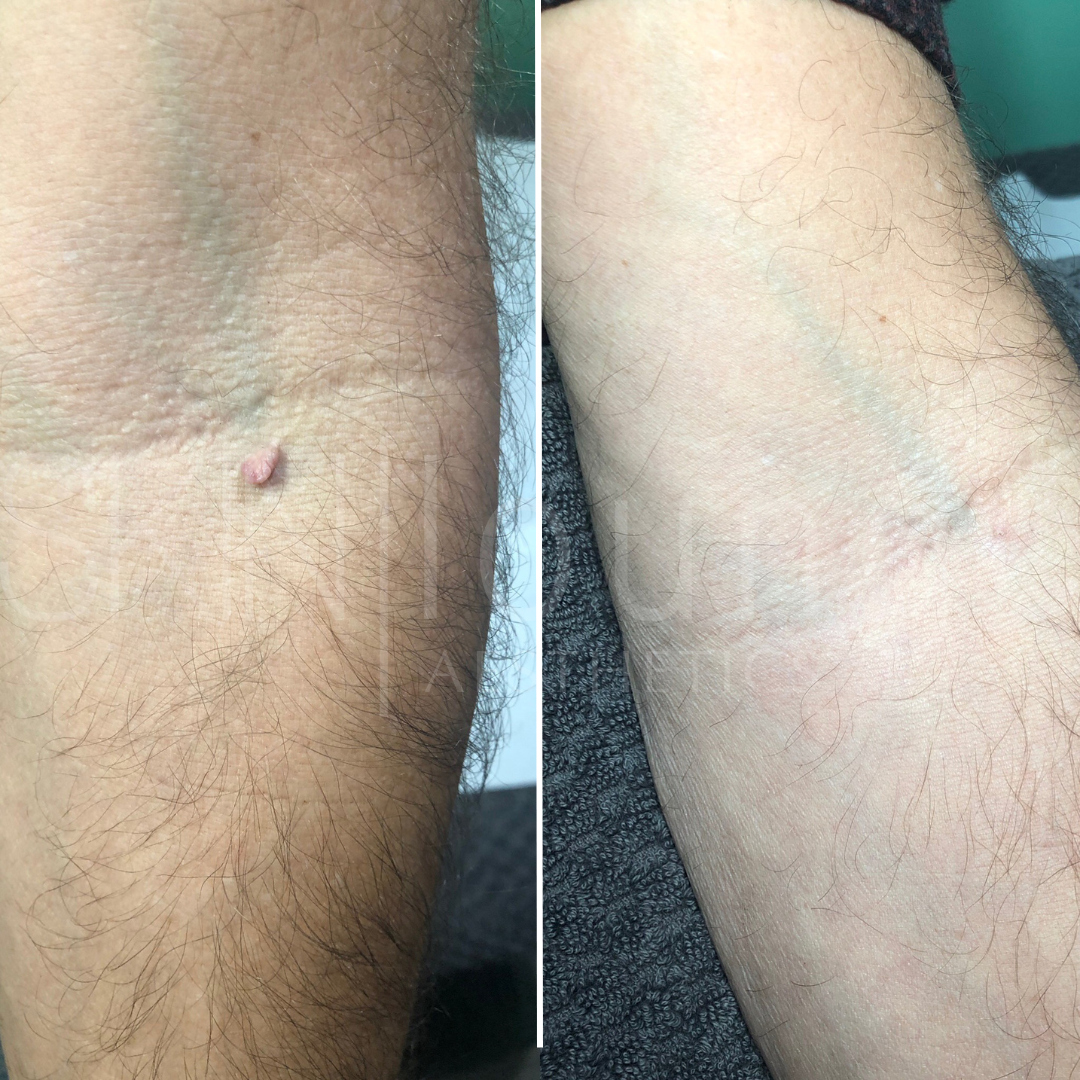 Here is a before and immediately after of a skin tag removal – this client had their skin tag for over 20 years: